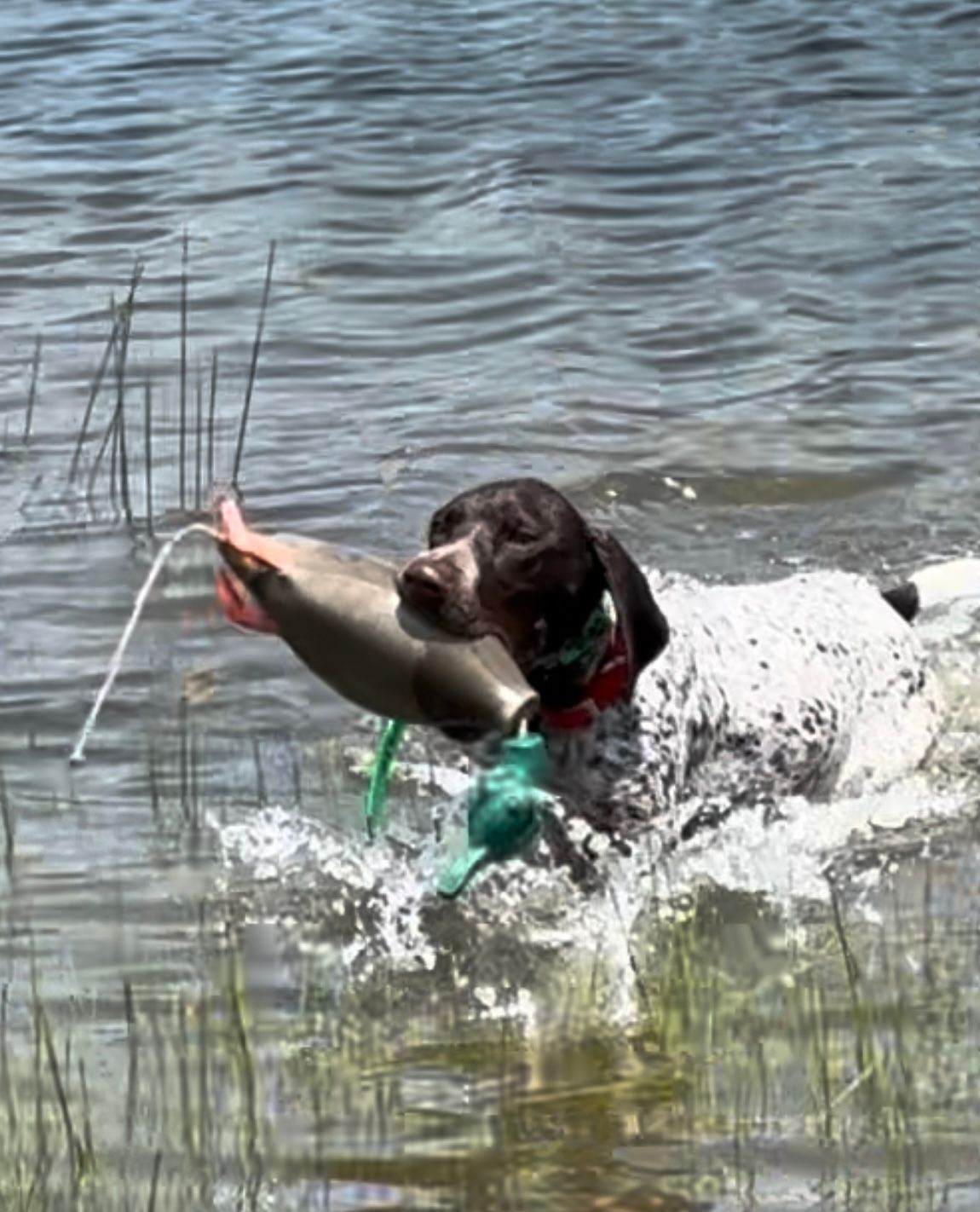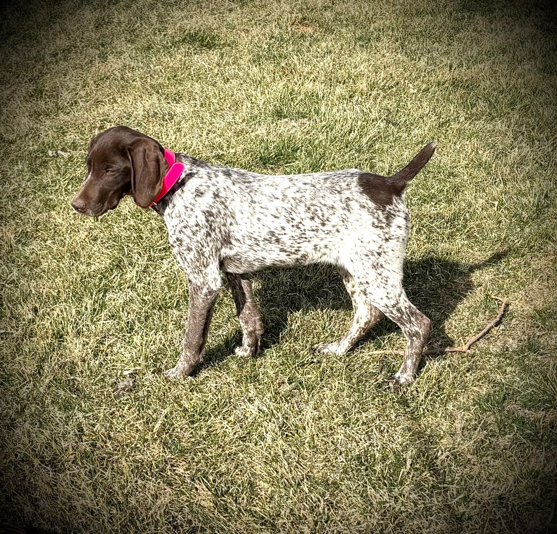 female Gsp. Points,honors,whoa broke, loads on command, retrieves to hand.