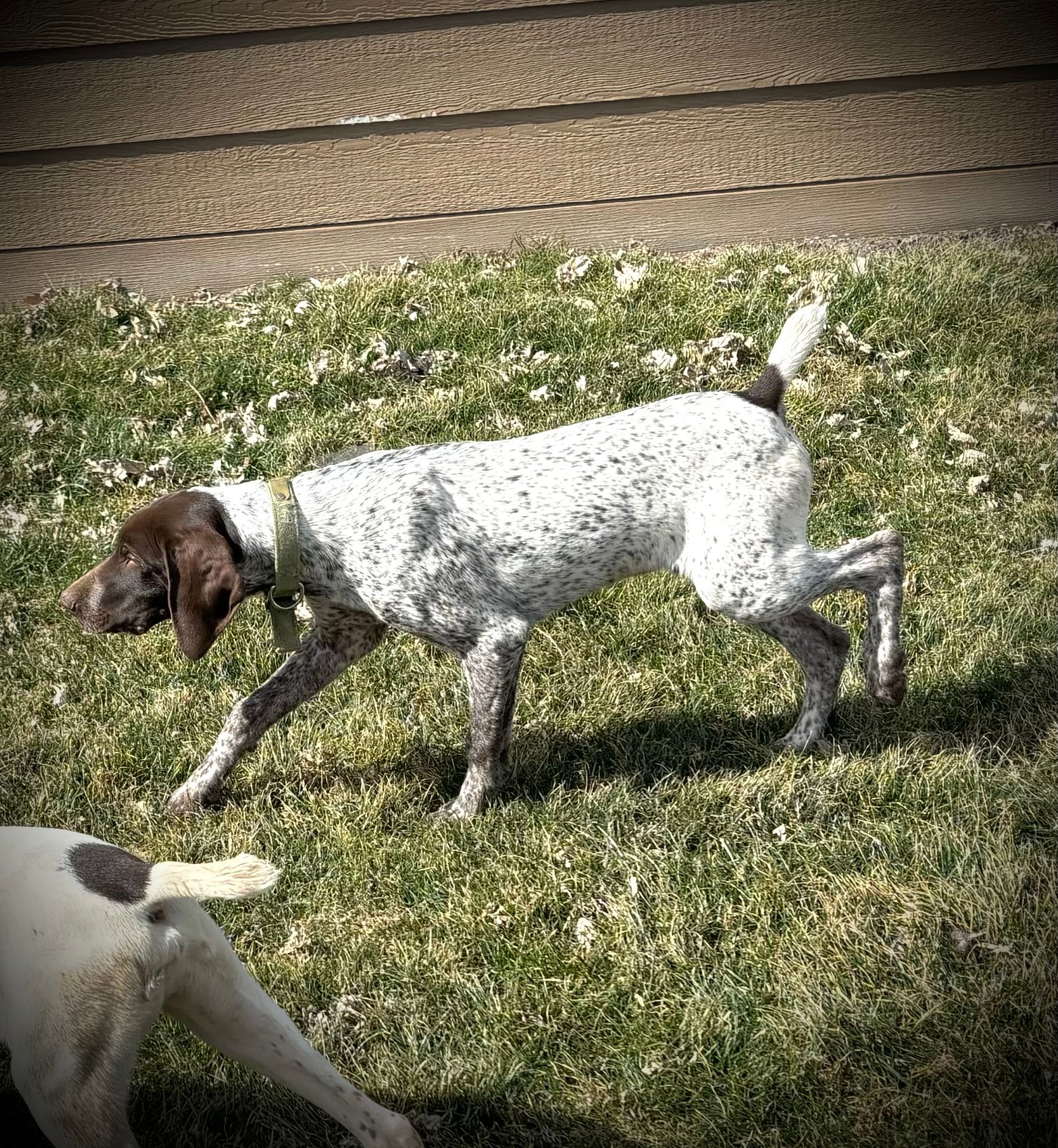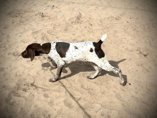 hunts hard great nose. Very nice shorthair. Has. Hunted quail and