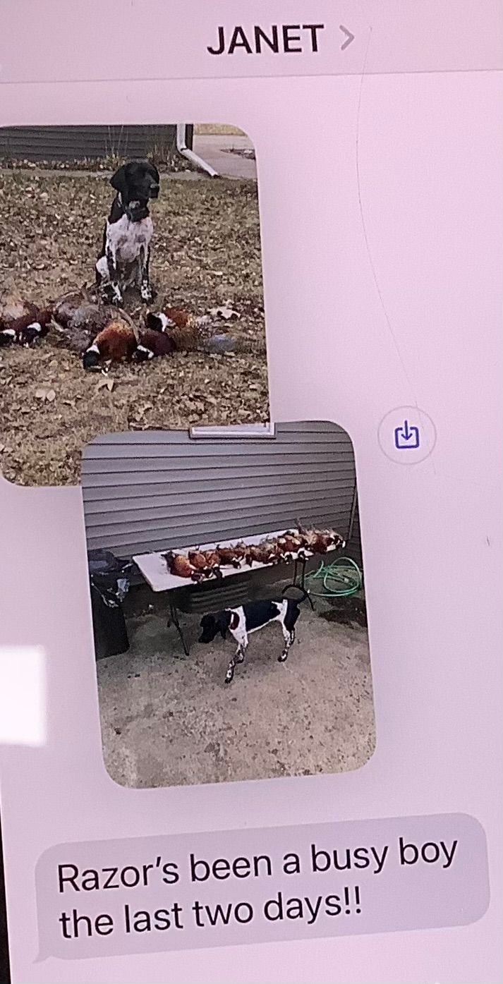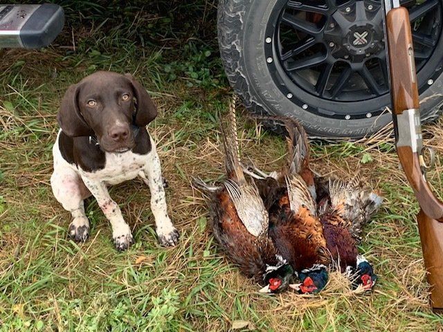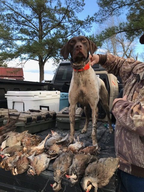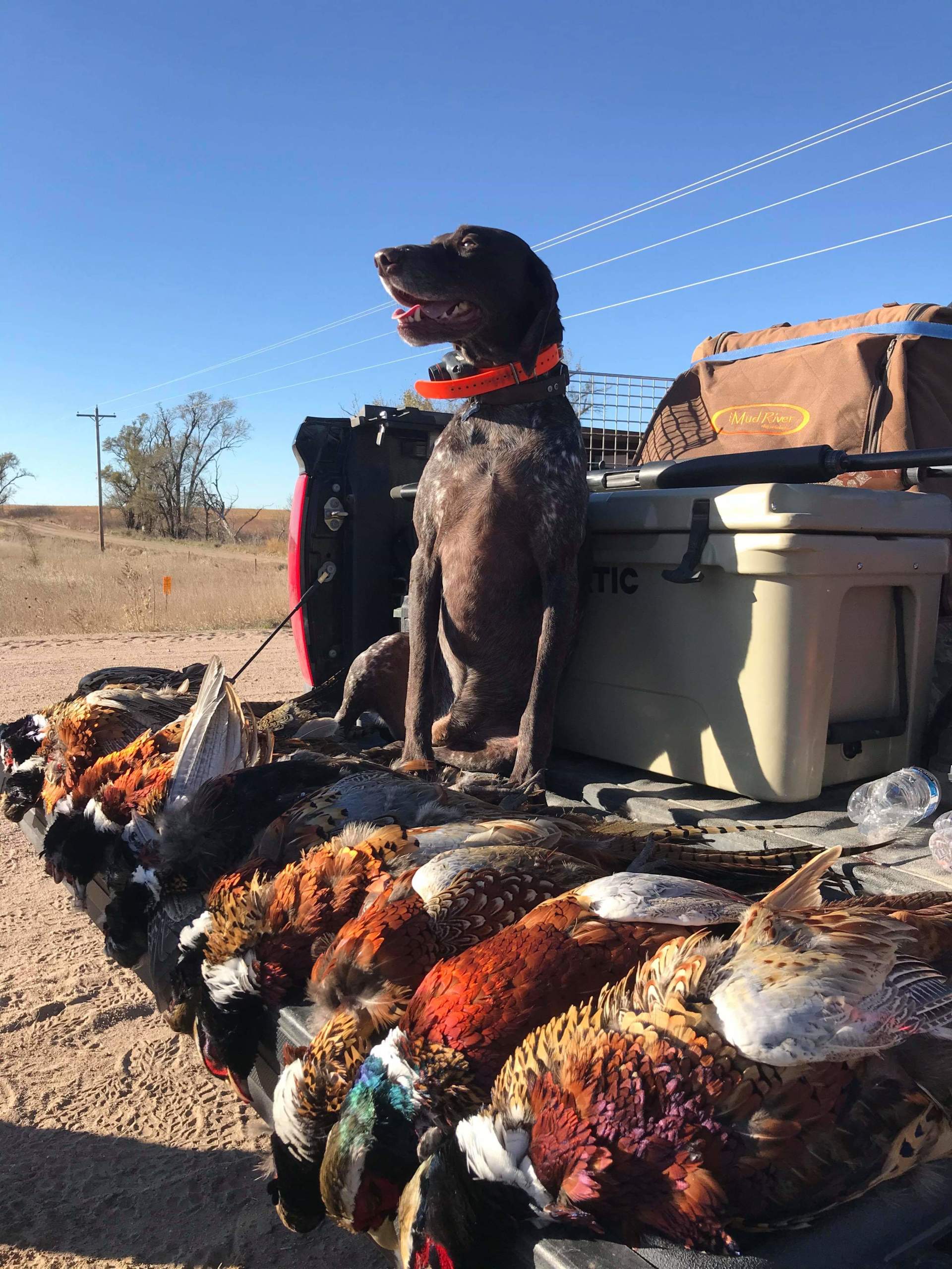 Joe. A little update on Boomer, I have guided with him (14) times since the beginning of October.He has pointed over (200) pheasants and retrieved the 140 of them that were shot.He has no quit in him, for a smaller shorthair he hunts in weeds and sorghum that is 4 feet tall and thick.I could not have got a better dog!!! He is fantastic with my grandchildren and anyone that comes to our house. He is great around other dogs.