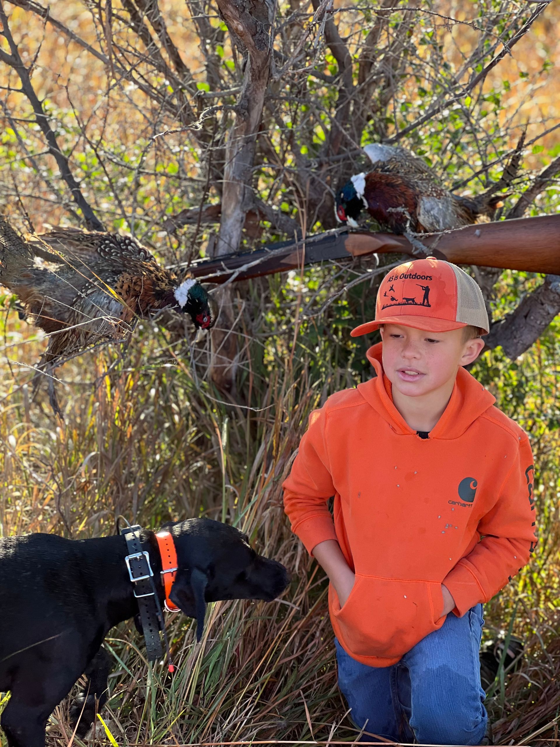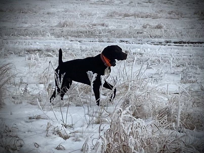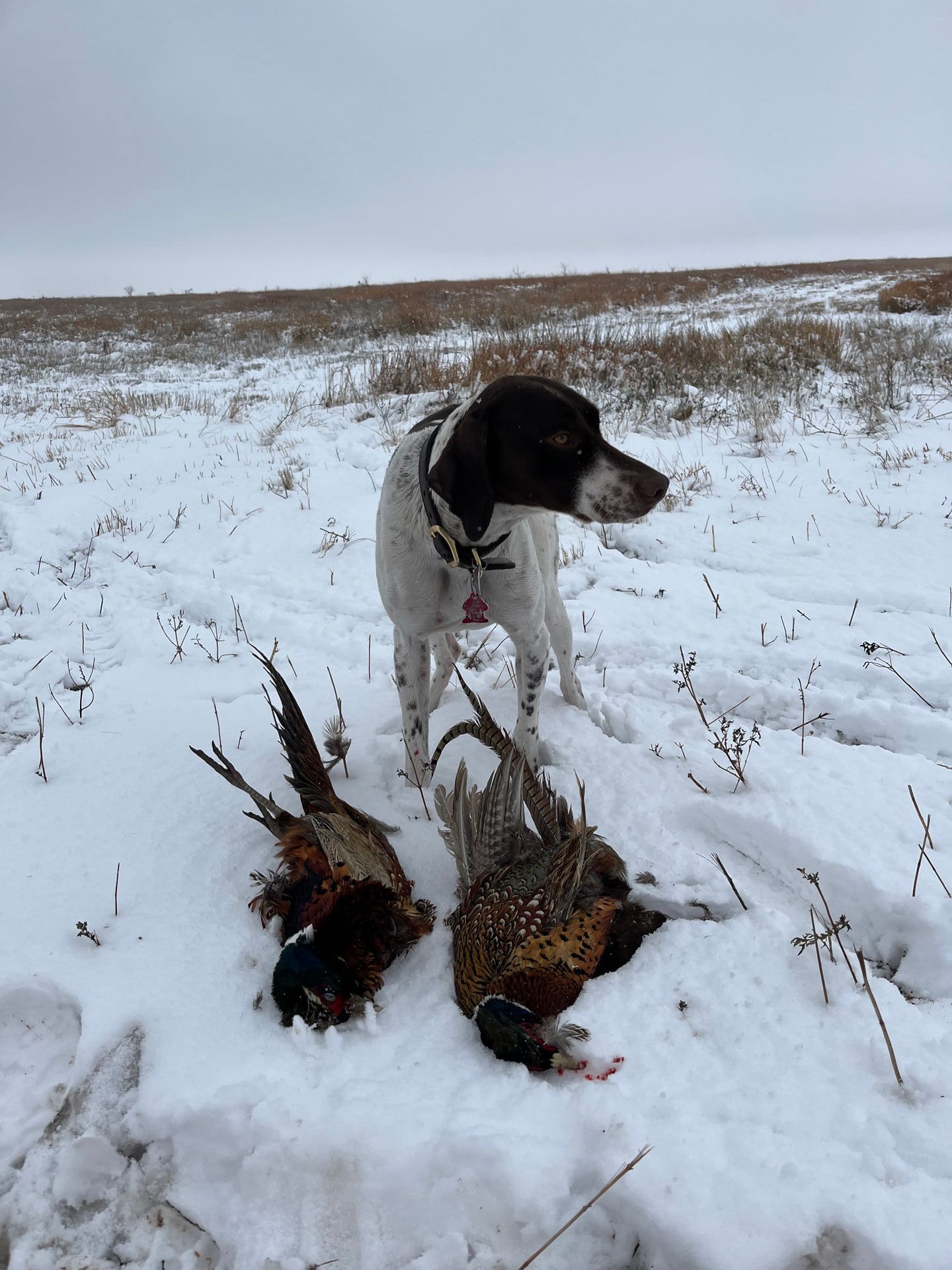 over 1/8 of a mile in dry grass before Ty found and pointed him in tall cattails. Both dogs were very patient and persistent. I’m very impressed