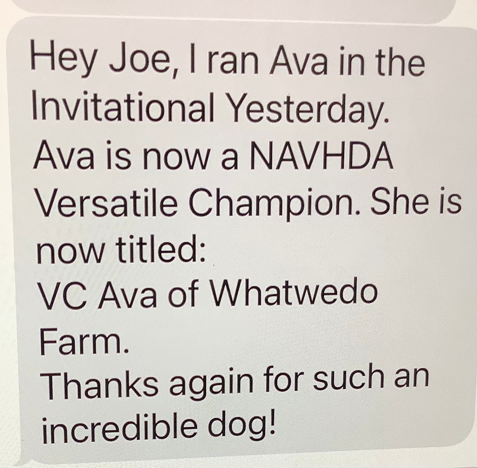 Joe thought you would want to know Ava and Sugar received their AKC junior hunt titles today!!!