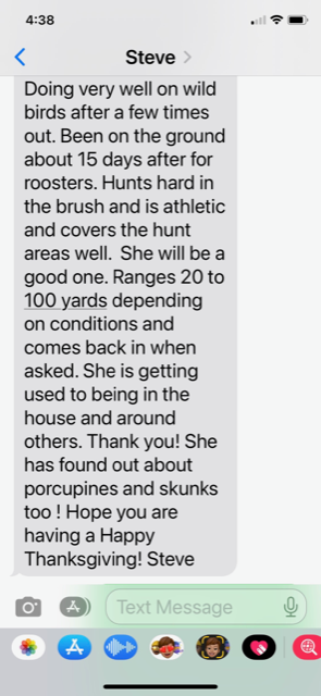 Thanks for such a spectacular dog. She is going to do well hunting But also a perfect family dog!! Really best of both worlds